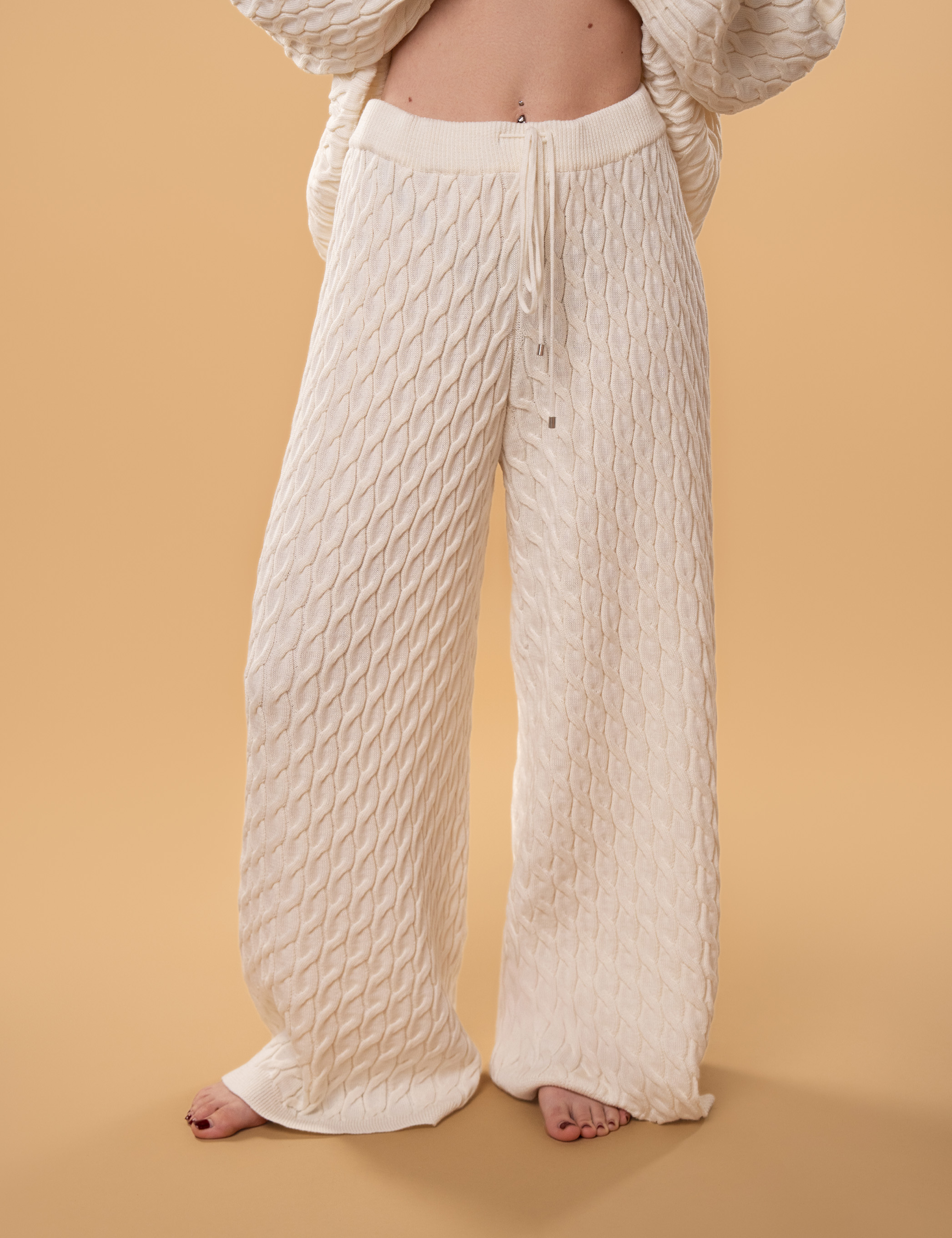 • Штани візуально подовжують силует завдяки плетінню «косами»;